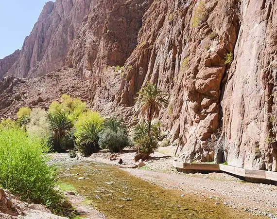 Walk up to have a walking tour of Ouarzazate city centre followed by a visit of Kasbah Taourirte. Afterwards, hit the road via the valley of roses to see Dades Gorges where you will have a break lunch beside the river. Then, carry on towards the spectacular high cliffs of Todgha Gorges, enjoy a chilled out walk there, then feast on locally made dinner and an overnight in a hotel near the gorges.