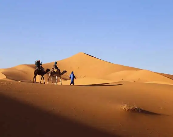 Go ahead on a trip from Mhamid riding camels and spend the best night in a desert camp settled among the sandy dunes. On the back of your camel, your ride across amazing diverse desert landscapes…
