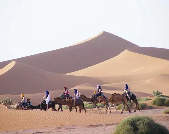 Visit the impressive Kasbahs of Ait Ben Haddou and Tamnougalt – Check out the four famous Mhamid Kasbahs – Discover the lush Daraa valley – Savor authentic meals of the region – Explore the desert dunes of Erg Chegaga, the oases and the Hamadas – Get to see Irigui lake – Ride camels - Spend a special night in a desert camp - Enjoy the desert animation at night