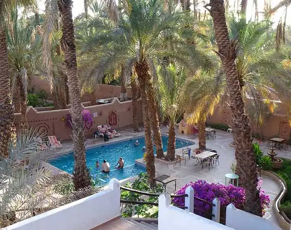 Leave Marrakech behind and have an early morning voyage crossing the high Atlas down to Ait Benhaddou where you will stroll along the mud-made alleyways of the Kasbahs before you resume to Agdz to savour a lunch Tamnougalt Kasbah. Afterwards, carry on through the 20km path along Daraa valley to Zagora to rest, have dinner and overnight in your hotel.