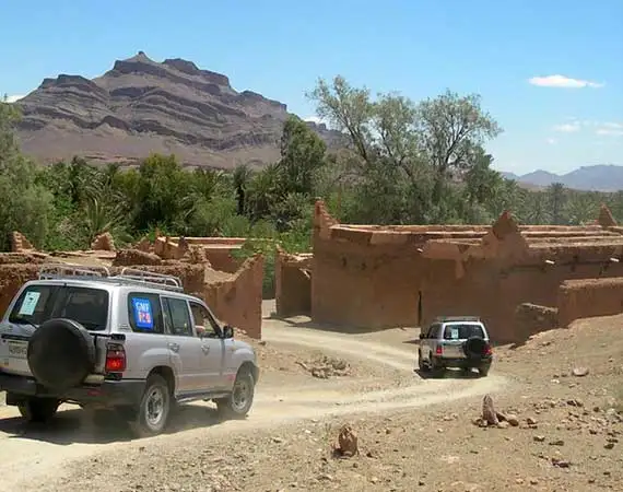 Wake up to a delicious breakfast in the middle of the desert, then head on 4x4 via the old Paris-Dakar caravan route and around the dried-out Irigui lake to Foum Zguid. Enjoy lunch at leisure in Taznakht and carry on to Marrakech late during the day.