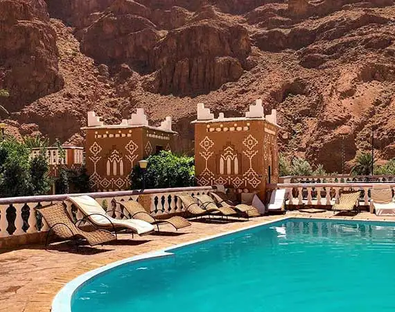 Discover the oasis of Skoura, the valleys of roses along with Dades – Explore Todgha Gorges – Venture into the desert on 4x4 and on the back of camels – Spend the night in a well-equipped comfortable tent- Hike the dunes of Erg Chebbi in Merzouga – Tuck in a breakfast in the desert and pause for local lunch in Nkob in the Atlas Mountains – Uncover Daraa valley