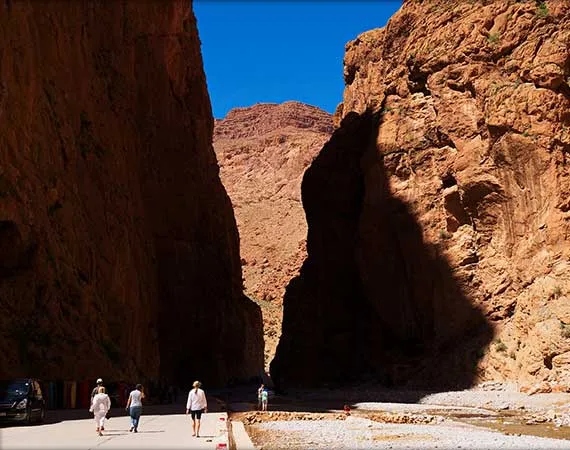 Enjoy a leisure walk in the valley of roses before you hit the road to Ait Oudinar to have a break for lunch. Afterwards, take a steep road to an altitude of 2800 m Steep through mountain passes, and via the villages of M'semrir and Tamtetoucht you reach Dades gorges and then Toghda gorges with breathtaking rocky hills that reach 300m high where you will have your dinner and overnight.