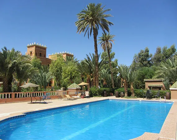 Jump in your 4x4 vehicle and start off the drive across the highest Mountain pass in Morocco Tizi n`Tichka (2660 m above sea level, down to the impressive site of Kasbah Telouat continuing via the old caravan route to the movie set and the UNESCO heritage site Kabsah Ait Benhaddou. Try some lunch before you have some time walking in the Kasbah`s winding streets. After that, carry on through Ouarzazate, and Skoura palm groves, to the valley of roses of Klaa M`gouna all the way to rest in your hotel and love the countryside.
