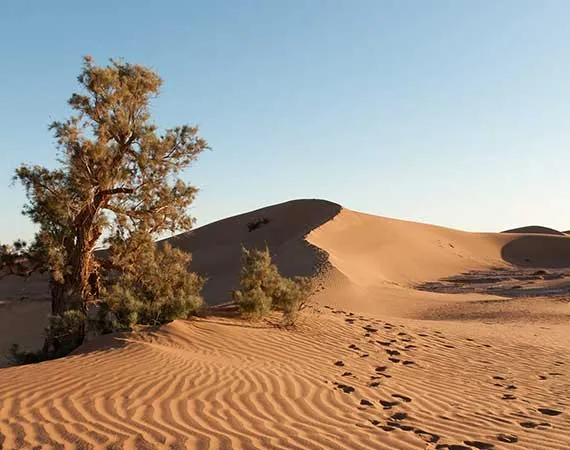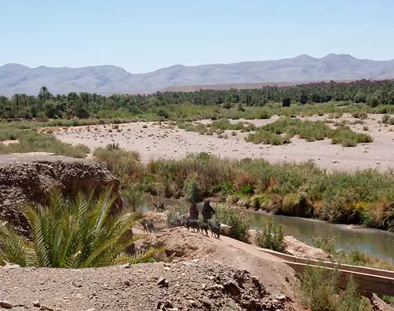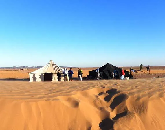 Visit Jebel Tifernine, Jebel Saghro and the Tizi n'Tinififft mountain pass – Check out the ksours, and Kasbahs of Daraa Valley – See the village of M`hamid – Walk the palm groves and ride a camel in the dunes of Rass N`khel – Discover the wide expanse of the sandy dunes of Aït Ounir, Erg Zaher and the Hamada Daraa – Travel across the western Daraa – Spend the night in a camp near the wells of Tel Attin – Climb to the top of the dunes of Erg Smâr – Explore the massive Jebel Bani plain – Stroll under the shades of tamarisk trees – Pay a visit of Erg Lihoudi and the palm grove of Oulad Driss – Uncover the local irrigation system of the region – Cut across the lavish Draa Valley