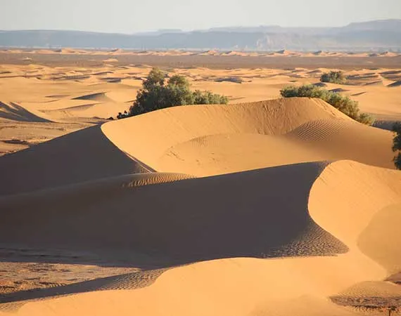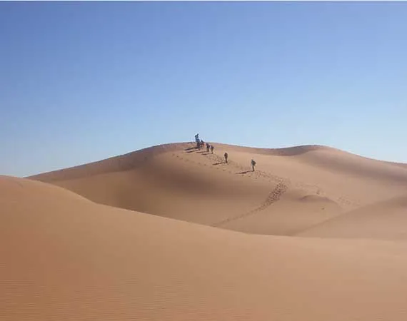 Enjoy a few hours of leisure walking until you turn up at Erg Smar where you will feast on a local lunch. Then, hop on your camp and make your way towards Erg Laghai.