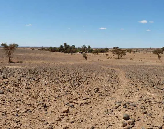 Leave Oued Naam behind and take the walking path through Daraa of Hamada, a very wide rocky expanse dotted with volcanic stones. Then at the end of the afternoon go back to Ouled Driss for the last night in the camp where you can take a shower to dust off the whole adventure.