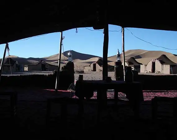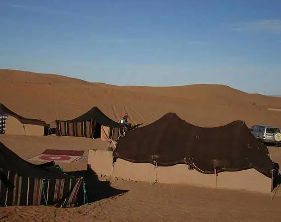 1 night in desert camp in Erg Lihoud and 1 night in the camp of Erg Chegaga (tents, mattresses, and blankets)